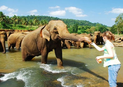 * PINNAWELA ELEPHANT ORPHANAGE- App. 55 miles from Colombo, off the Colombo - Kandy road is Pinnawela, where an orphanage was started in 1975 to house the abandoned and the wounded elephants. The number of elephants has increased to more than 65 now; including Baby Elephants brought from various parts, as well as some of the more than 25 babies born, as a result of the captive breeding programme. The best time to visit is the feeding time from 0930-1000 hrs and 1330-1400 hrs and the bathing time from 1000-1030 hrs and 1400-1430 hrs when all the elephants are taken to the river close by.